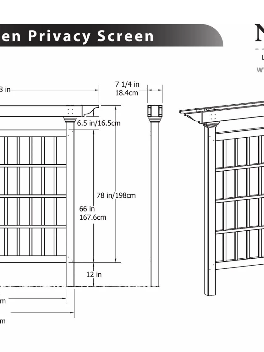 You’ll be impressed by the Camden Vinyl Privacy Screen – nearly eight feet high and over six feet wide! A great choice for displaying prized climbers while providing privacy, shade and beauty in your yard. This well-proportioned stand-alone trellis provides 48 separate cells for your roses, clematis or honeysuckle to grow and thrive. Depending on screen placement plants can enjoy sunshine from both sides! NOTE: Extra materials are required to properly install your Camden Privacy Screen! Required: a 4″ x 4″ x 6″ wood pressure-treated wood post (cut in two – 36” lengths). Ships in two boxes. Posts are 4” x 4”.