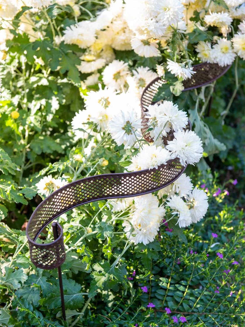Some of the most stunning flowers are also the most unwieldy, their top-heavy blooms causing them to flop and droop. These whimsical linking stakes, with undulating scroll-like curves, provide perfect support for tall and top-heavy flowers like dahlias, peonies, coreopsis, campanula, and more. The wide band and rounded edges are gentle on plants, and the undulating silhouette allows flowers to fall more naturally, creating an elegant tableau.